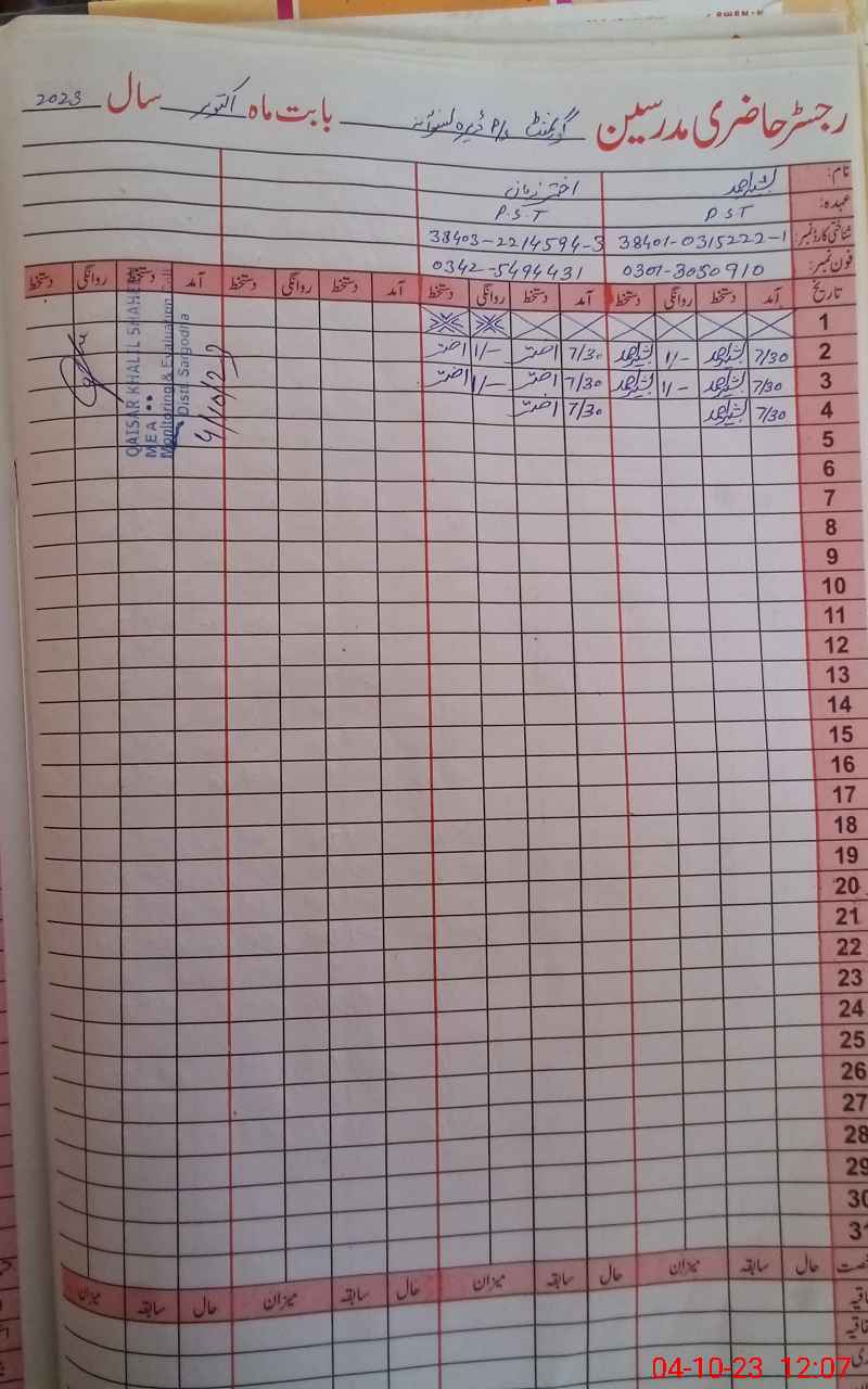 | Name: BA**** AH**** Designation: (School Headmaster's/Headmistress's) PST Phone/Cell Number: 03**** |