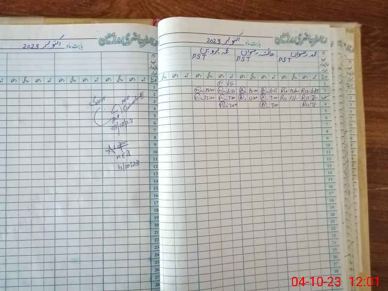 | Name: AA**** RI**** Designation: (School Headmaster's/Headmistress's) PST Phone/Cell Number: 03**** |