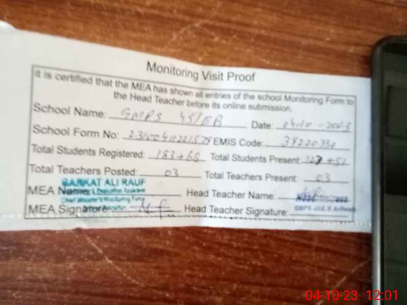 | EMIS Code: 39220330 | Name of School: GMPS 45 EB | |||