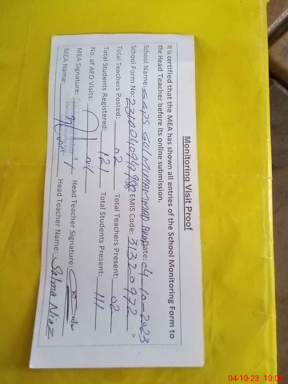 | EMIS Code: 31320972 | Name of School: GGPS GUL MUHAMMAD ARAIN | |||