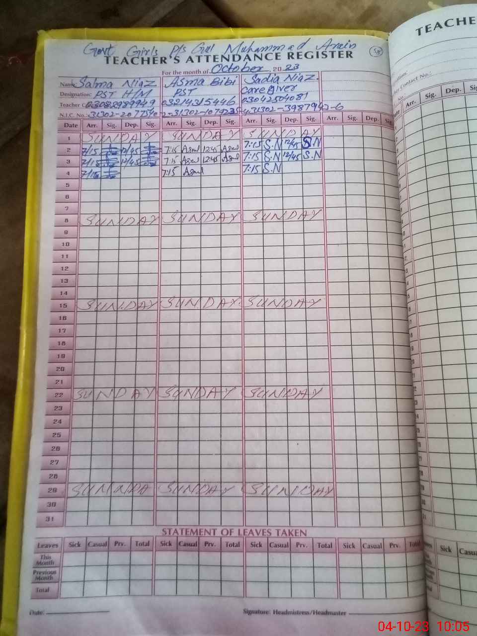| Name: SA**** NI**** Designation: (School Headmaster's/Headmistress's) PST/PTC/JV Phone/Cell Number: 03**** |