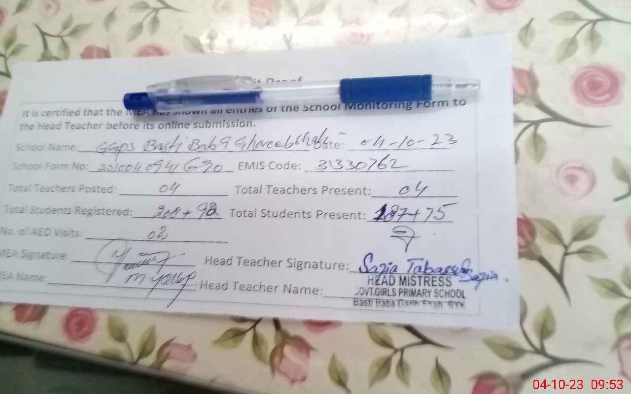 | EMIS Code: 31330762 | Name of School: GGPS BASTI BABA GHARIB SHAH | |||