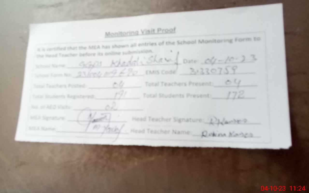 | Attendance Register | Head Teacher | MEA with School | Visit Proof |