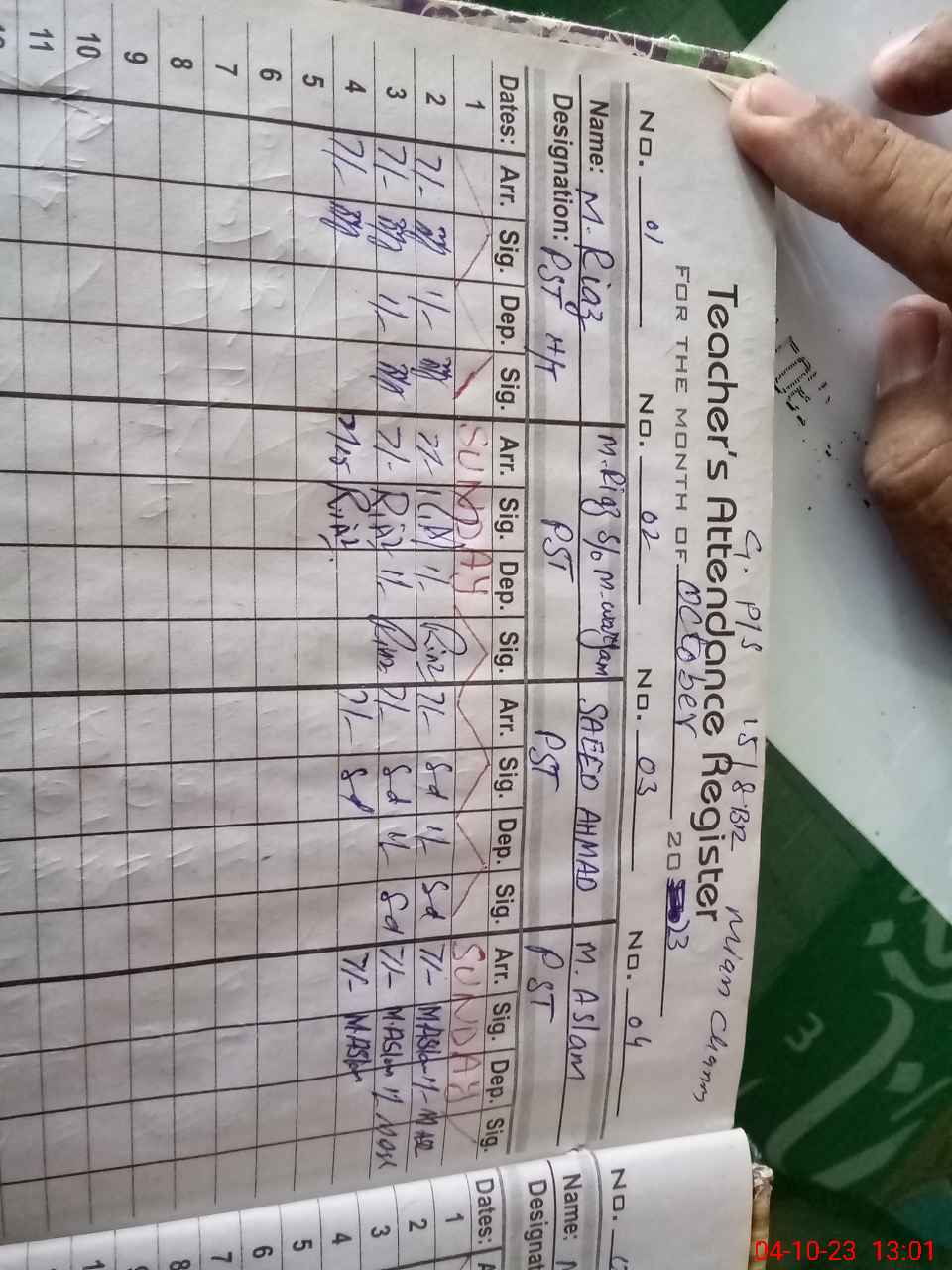 | Name: MU**** RI**** Designation: (School Headmaster's/Headmistress's) PST Phone/Cell Number: 03**** |