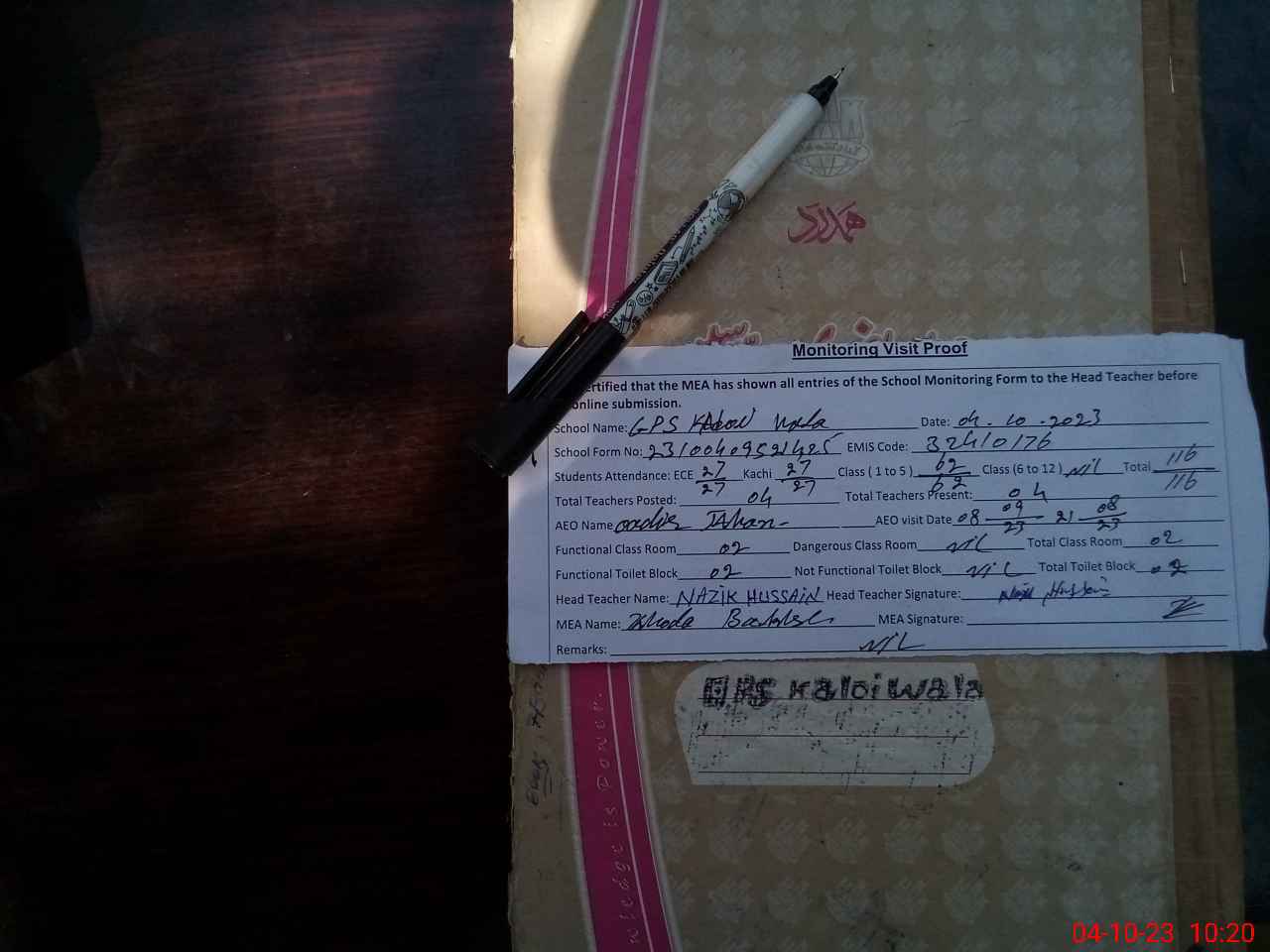 | EMIS Code: 32410176 | Name of School: GPS KOLOI WALA P/O DAJAL | |||