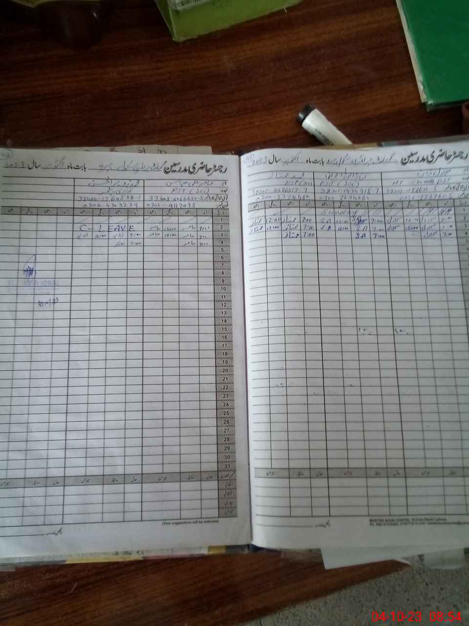 | CNIC | Full Name | Designation | R/C | Absence During Last Calender Month |
