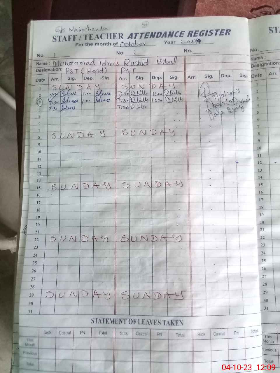 | Name: Mu**** Id**** Designation: (School Headmaster's/Headmistress's) PST Phone/Cell Number: 03**** |