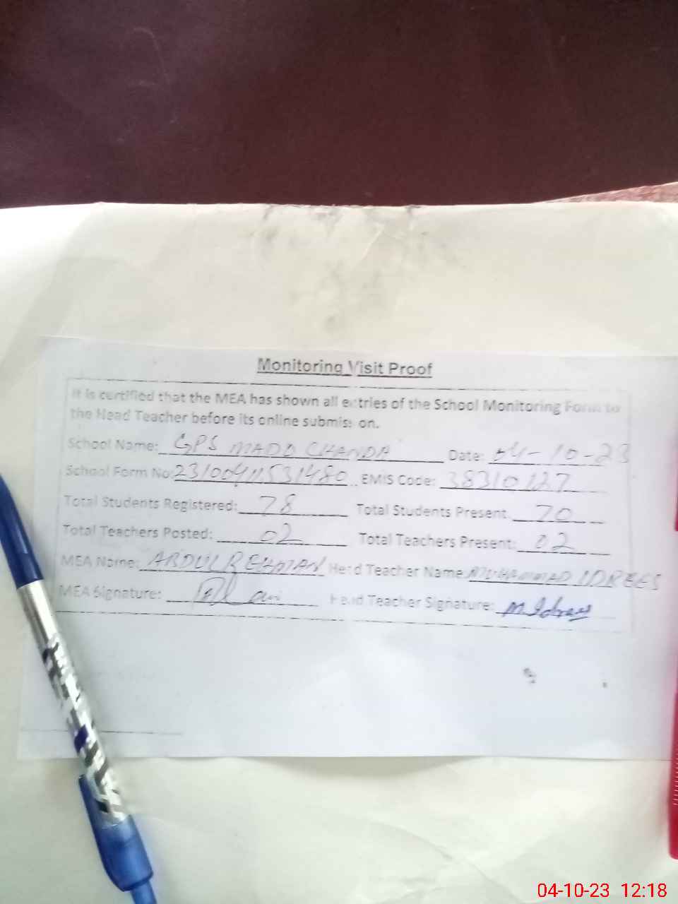 | EMIS Code: 38310127 | Name of School: GPS MADO CHANDA | |||