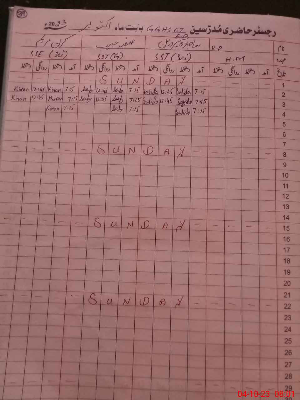 | Name: SA**** PE**** Designation: (School Headmaster's/Headmistress's) S.S.T(SCI) Phone/Cell Number: 03**** |