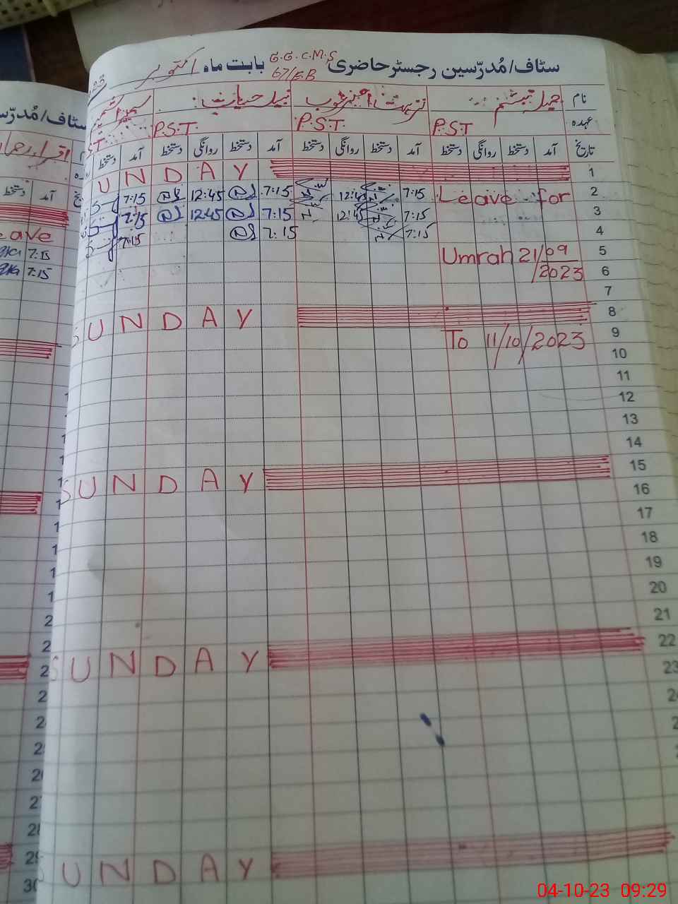 | Leave | Duty | Absent | Maternity | Medical | Ex- Pak |