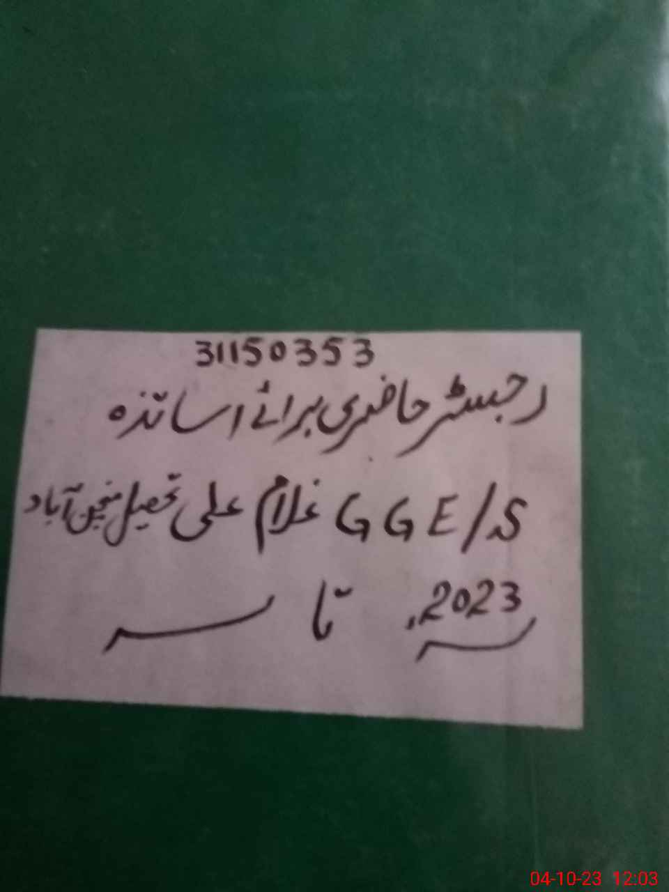 | EMIS Code: 31150353 | Name of School: GGES GHULAM ALI | |||