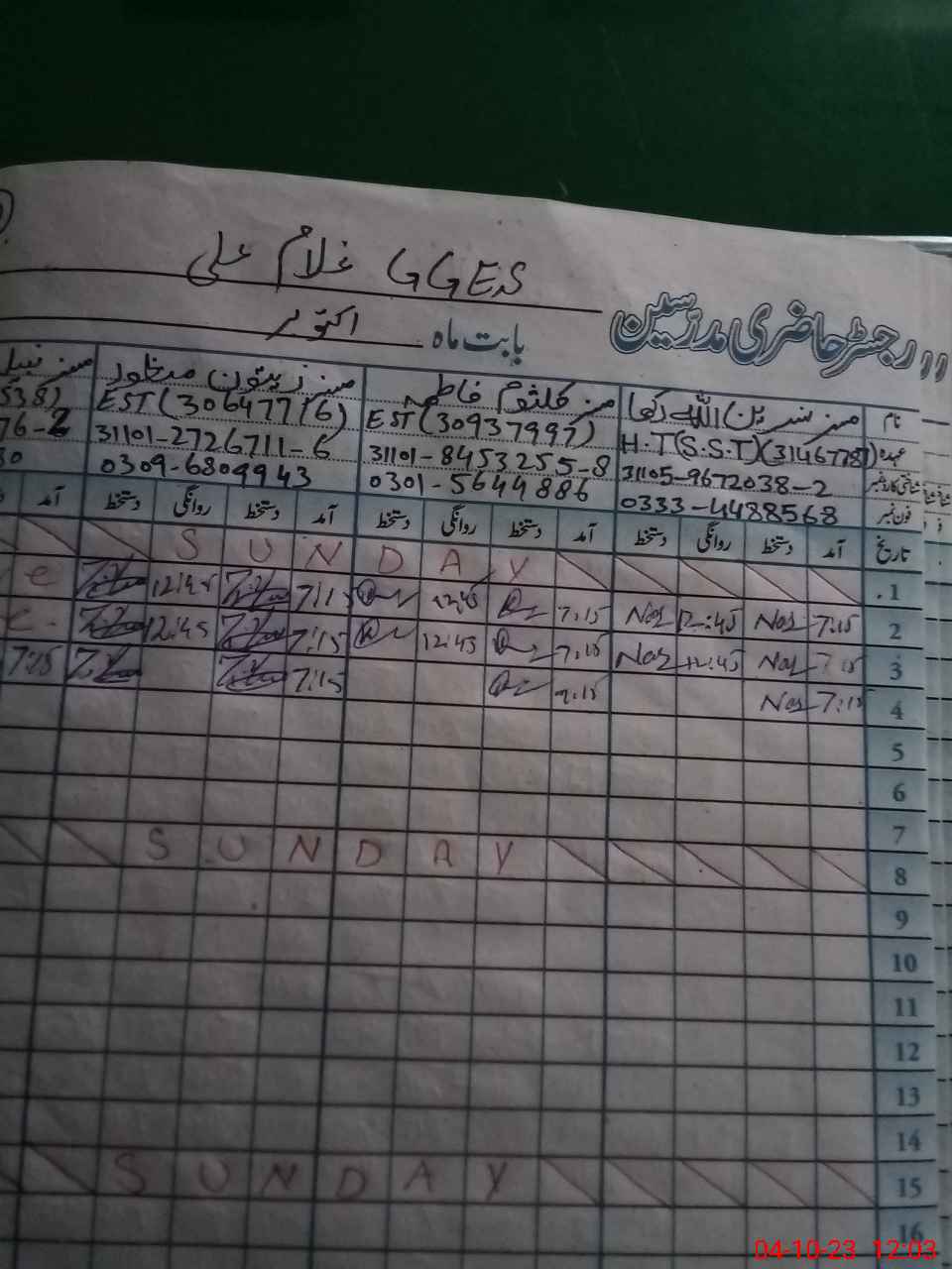 | Name: Na**** Al**** Ra**** Designation: (School Headmaster's/Headmistress's) S.S.T. Sci Phone/Cell Number: 03**** |