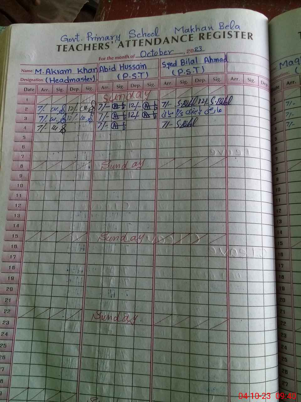 | Name: AB**** HU**** Designation: (School Headmaster's/Headmistress's) PST Phone/Cell Number: 03**** |