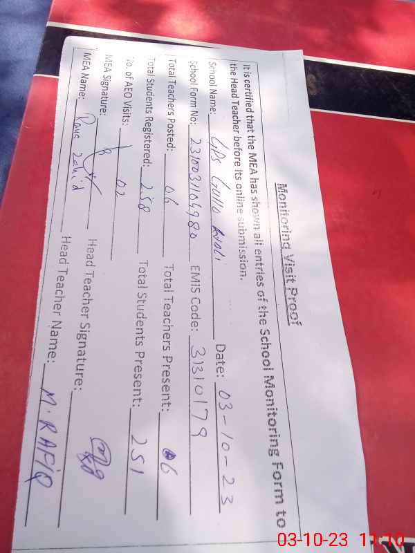 | EMIS Code: 31310179 | Name of School: GPS GULOOWALI (After Noon) | |||