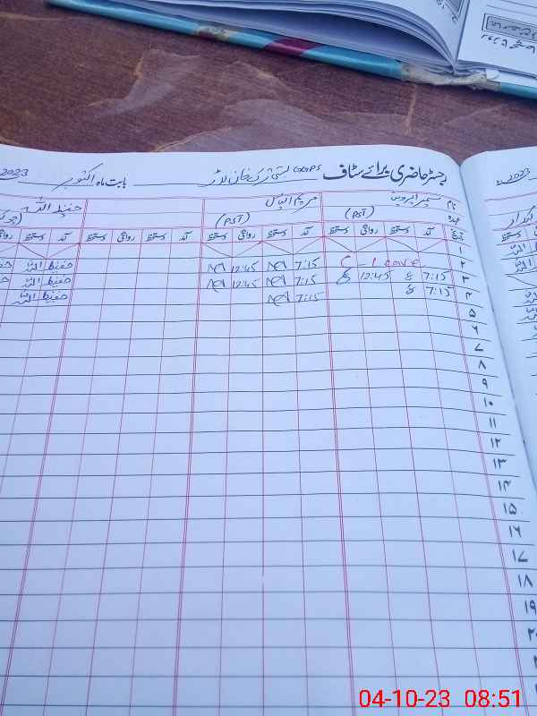 | CNIC | Full Name | Designation | R/C | Absence During Last Calender Month |