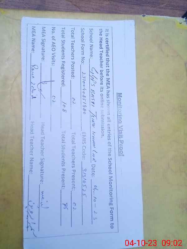 | EMIS Code: 31310525 | Name of School: GGPS BASTI TURK KHAN LAAR | |||