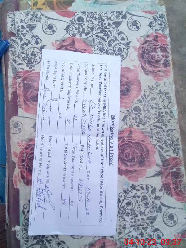 | EMIS Code: 31310708 | Name of School: GPS KOTLA KAHN LAR | |||