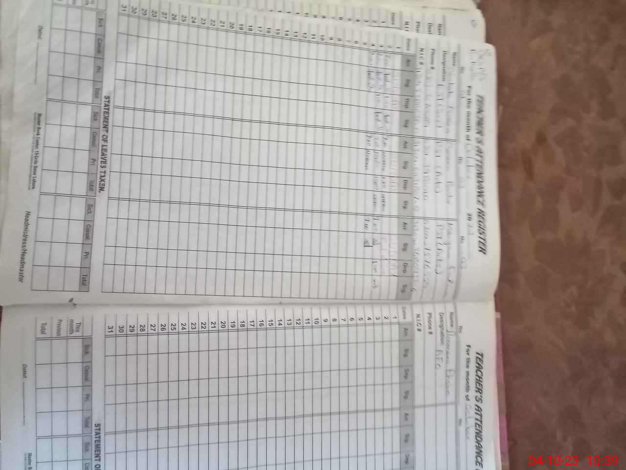| Attendance Register | Head Teacher | MEA with School | Visit Proof |