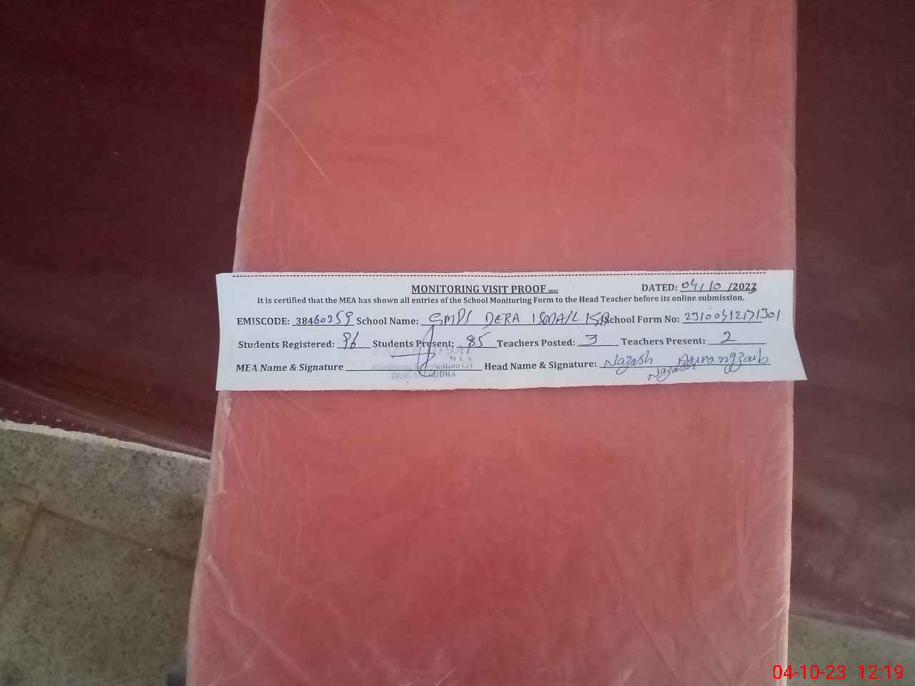| EMIS Code: 38460259 | Name of School: GMPS DERA ISMAIL KA | |||