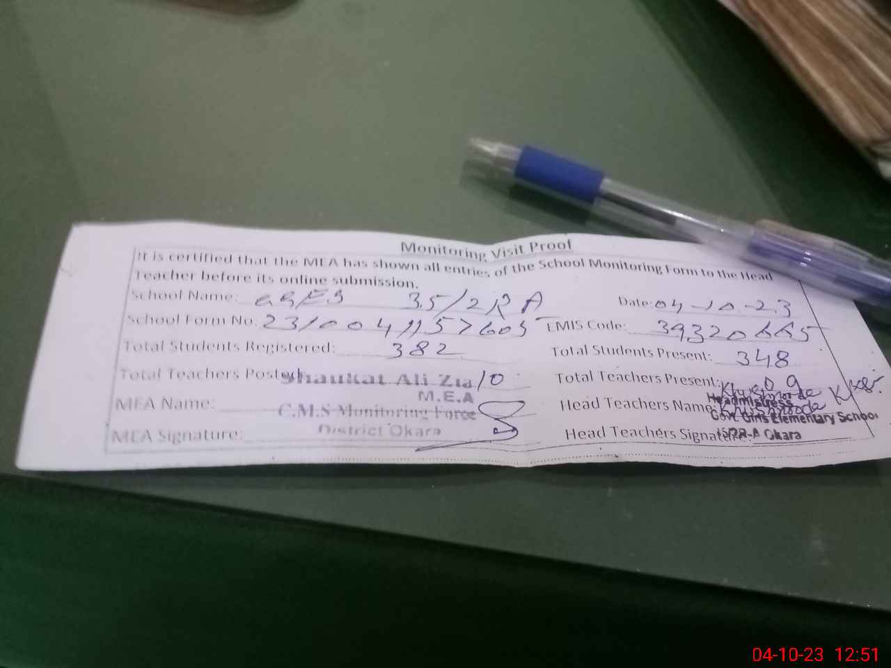 | Monitoring Date: 04-10-2023 | Start Time: 04-10-2023 11:57 AM | End Time: 04-10-2023 12:51 PM | Name of MEA: SH**** AL**** ZI**** (R**** | |