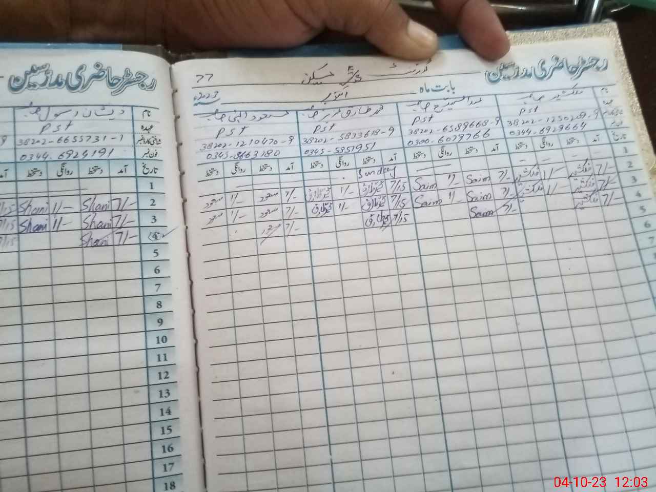 | 38**** | Na**** Al**** Sh**** | 5 | 1 | 0 | 0 | 0 | 0 | 0 | 0 | 0 | 0 | 0 | Exam Duty |
