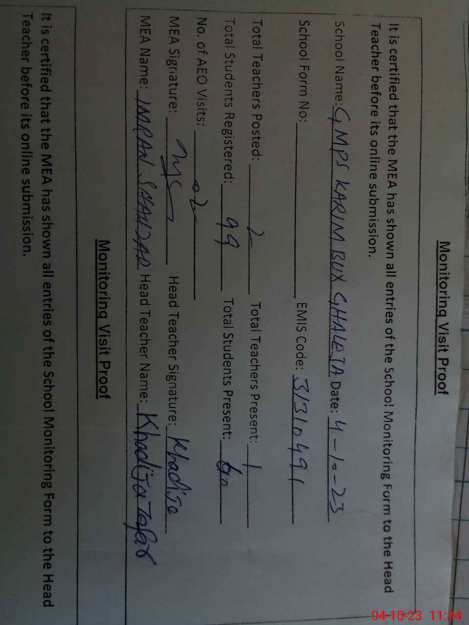 | EMIS Code: 31310491 | Name of School: GMPS KARIM BUX GHALEJA | |||