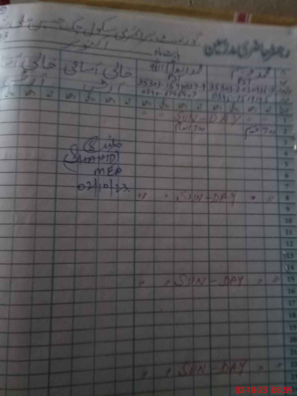 | Name: Mu**** In**** Ul**** Designation: (School Headmaster's/Headmistress's) PST Phone/Cell Number: 03**** |