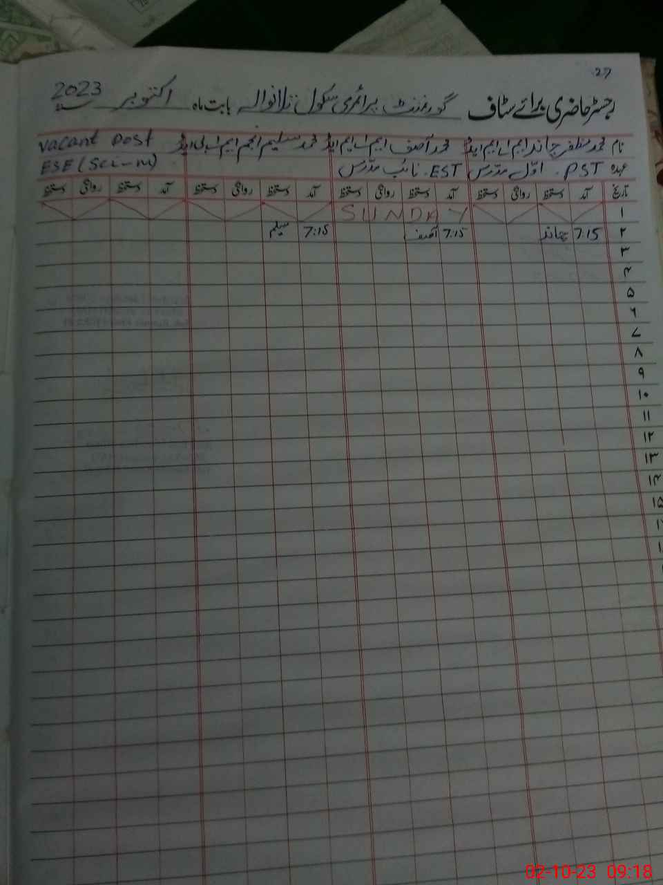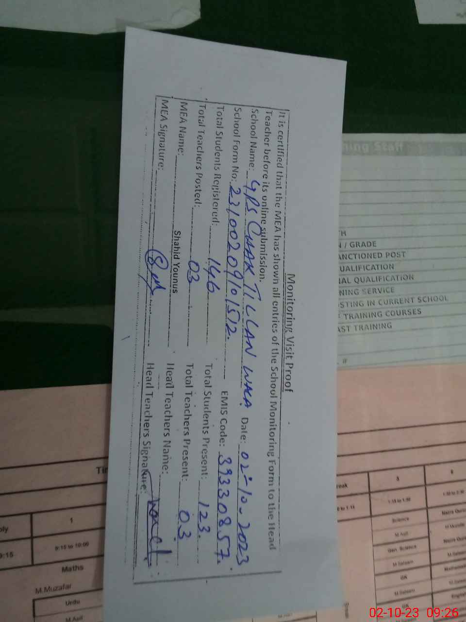 | Name: MMU**** CH**** Designation: (School Headmaster's/Headmistress's) PTC/JV Phone/Cell Number: 03**** |
