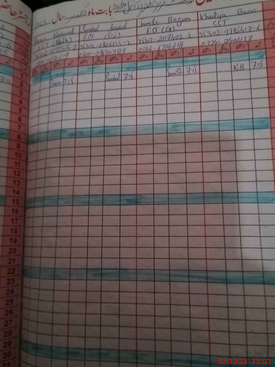 | Name: KH**** BA**** Designation: (School Headmaster's/Headmistress's) SST Arts Phone/Cell Number: 03**** |