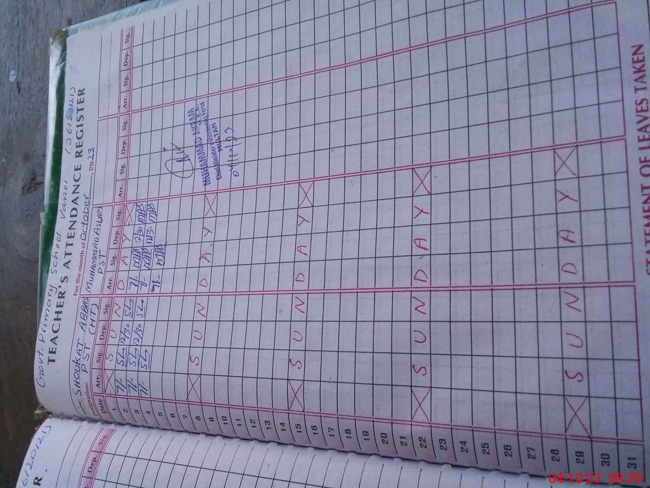 | Name: Sh**** Ab**** Designation: (School Headmaster's/Headmistress's) PST Phone/Cell Number: 03**** |