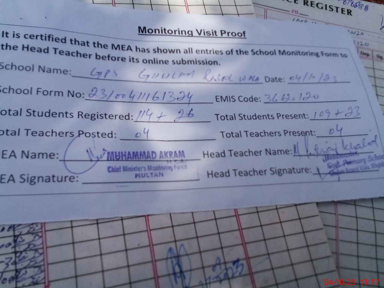 | EMIS Code: 36120120 | Name of School: GPS GHULAM RASOOL WALA P/O MATOTLI | |||