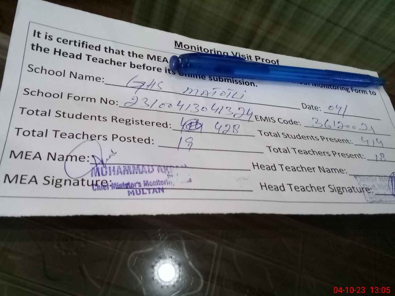 | Monitoring Date: 04-10-2023 | Start Time: 04-10-2023 12:50 PM | End Time: 04-10-2023 01:07 PM | Name of MEA: MU**** AK**** | |