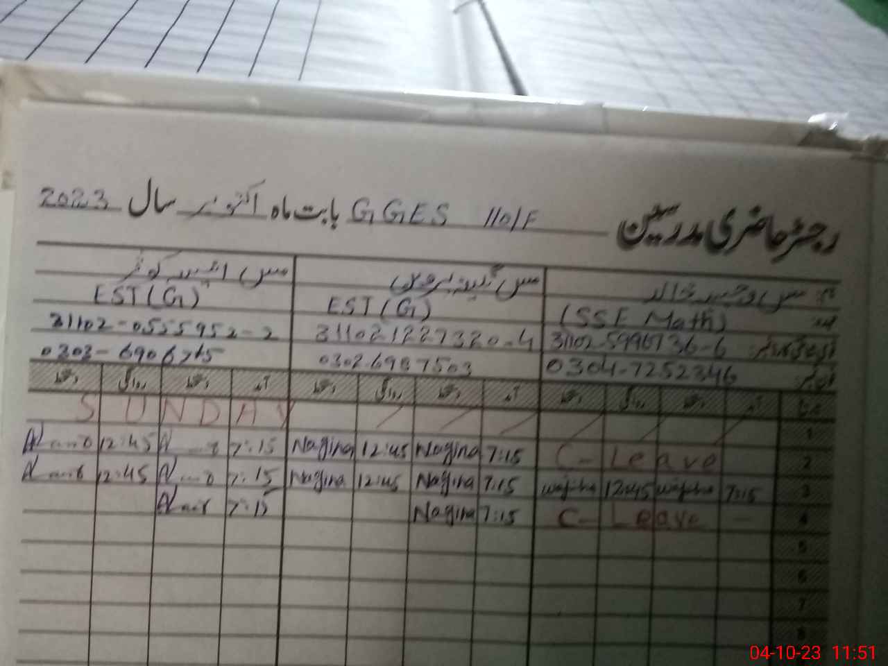 | Name: Wa**** Kh**** Designation: (School Headmaster's/Headmistress's) SSE Phone/Cell Number: 03**** |