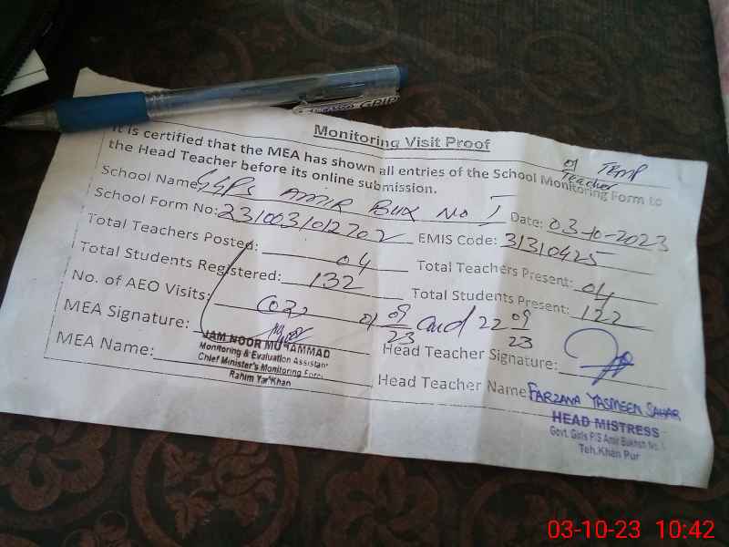 | EMIS Code: 31310425 | Name of School: GGPS AMIR BUKHSH | |||