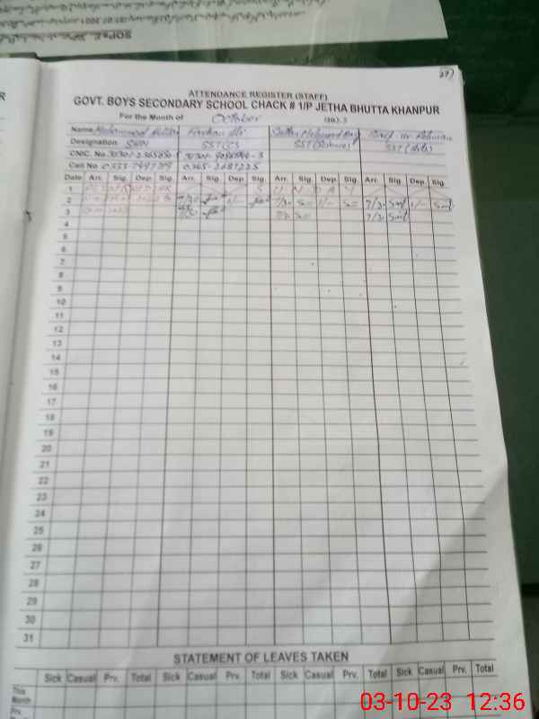| EMIS Code: 31310006 | Name of School: GHS CHAK 1/P JETHA BHUTTA | |||