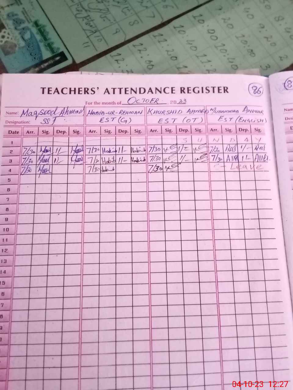 | Leave | Duty | Absent | Maternity | Medical | Ex- Pak |