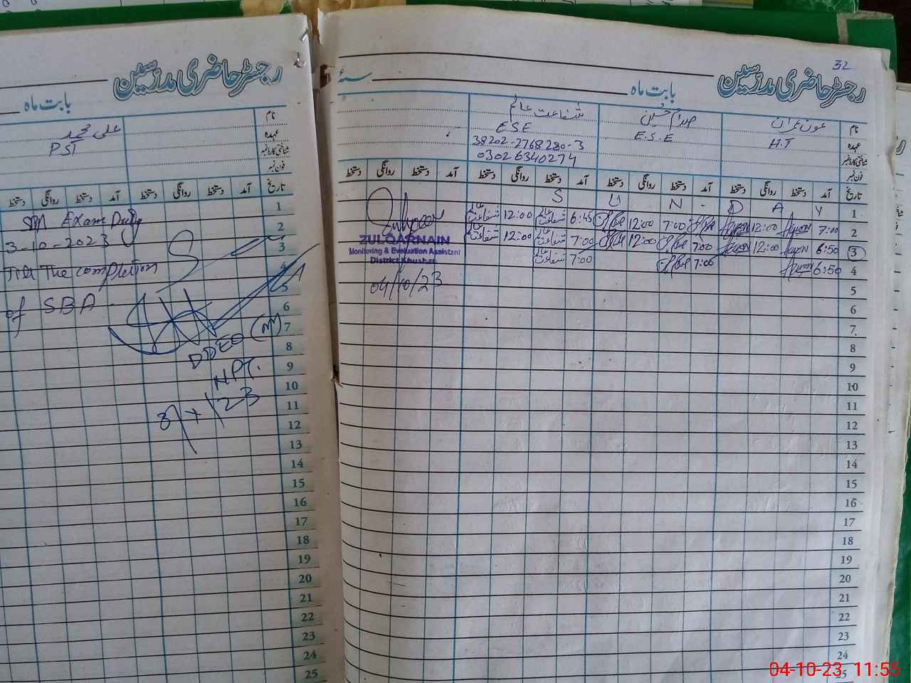 | Name: Al**** Mu**** Designation: (School Headmaster's/Headmistress's) PST Phone/Cell Number: 03**** |