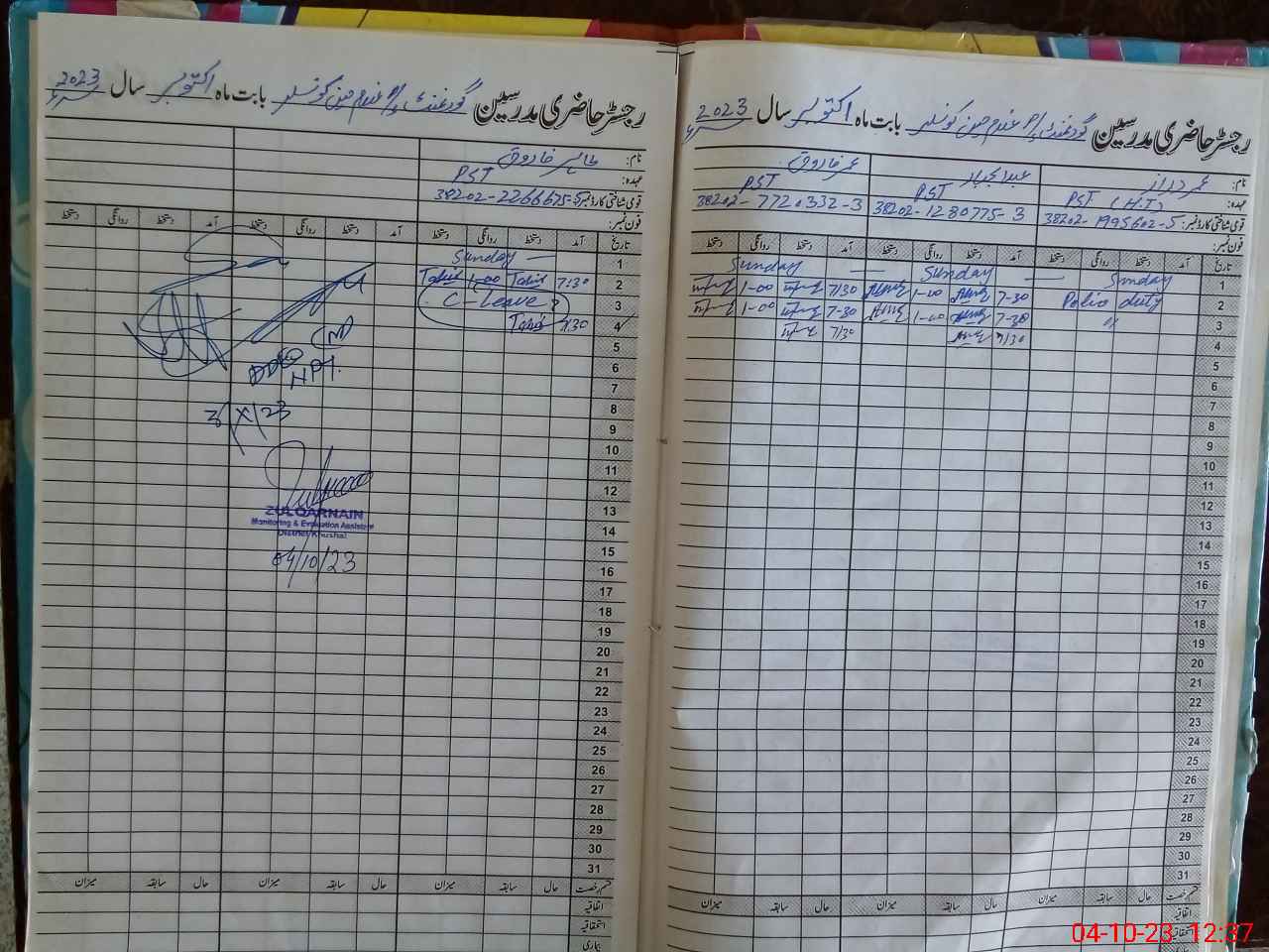 | Name: UM**** DR**** Designation: (School Headmaster's/Headmistress's) ESE Phone/Cell Number: 03**** |