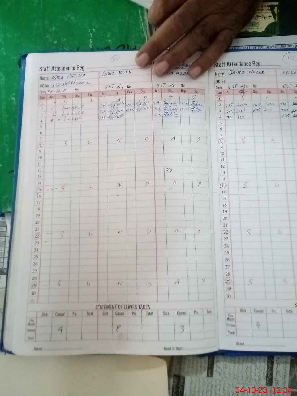 | Name: AS**** FA**** Designation: (School Headmaster's/Headmistress's) HEADMISTRESS Phone/Cell Number: 03**** |