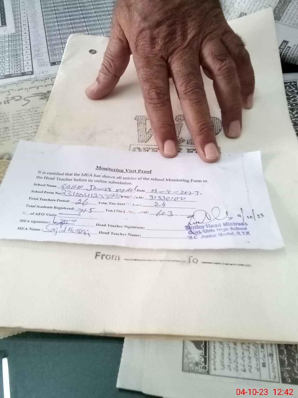 | EMIS Code: 31330100 | Name of School: GGHS MC JUNIOR MODEL R.Y.KHAN | |||