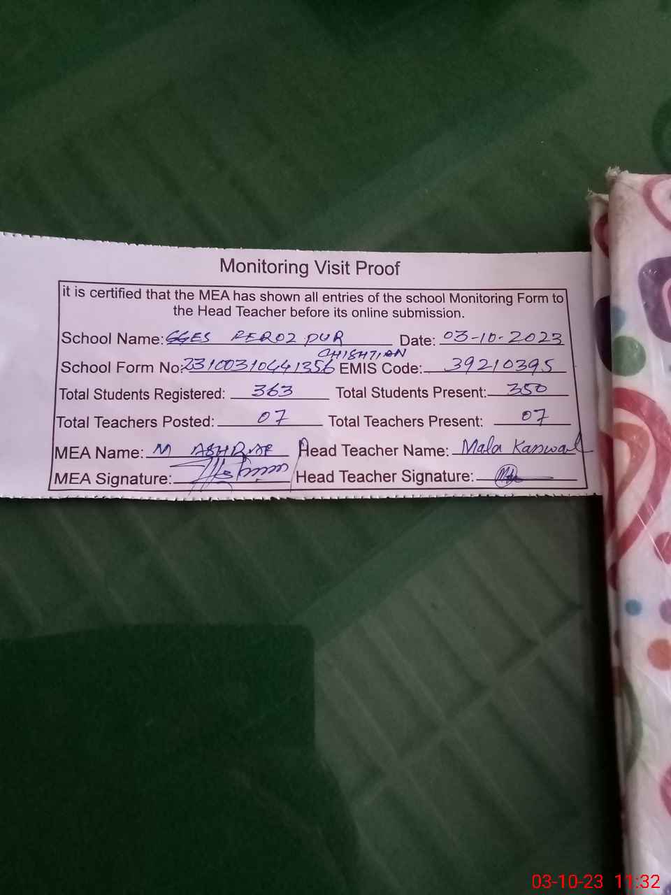 | EMIS Code: 39210395 | Name of School: GGES FEROZ PUR CHISHTIAN | |||