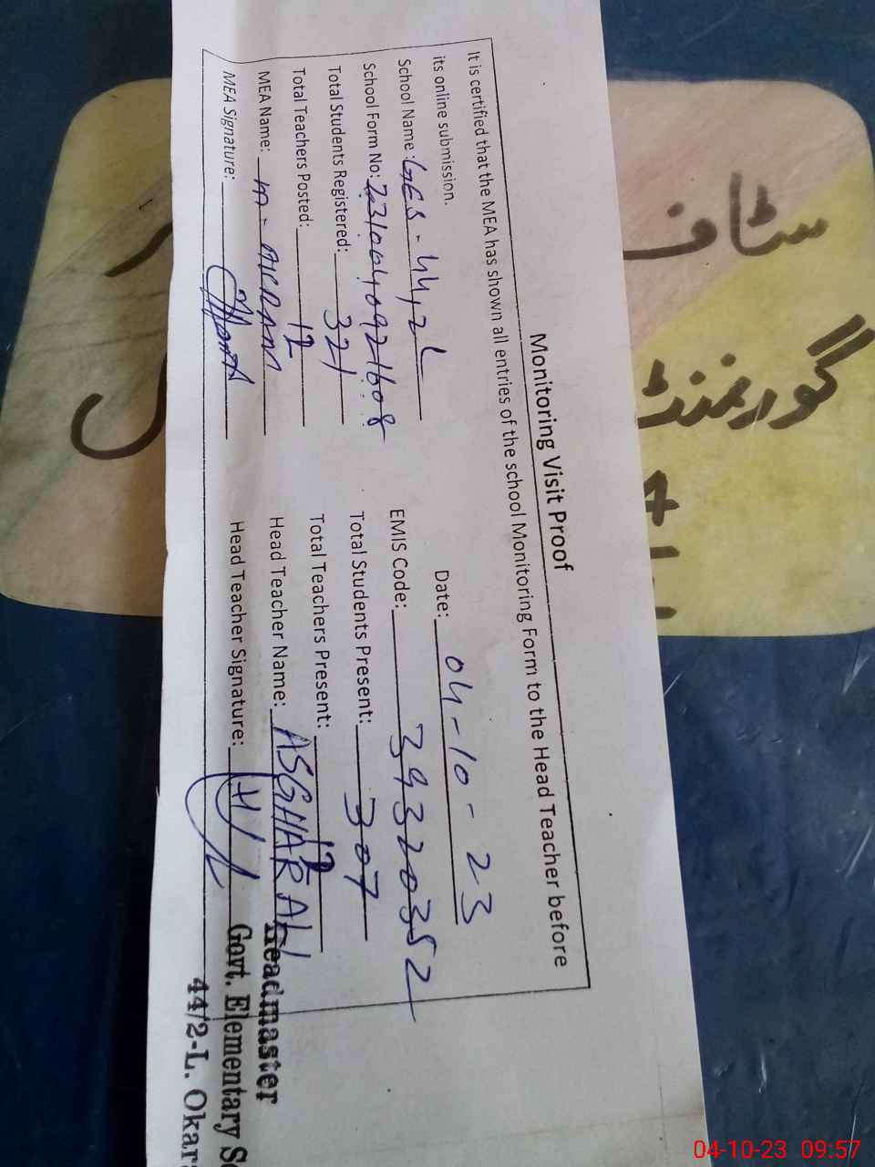 | EMIS Code: 39320352 | Name of School: GES CHAK 44/2-L | |||