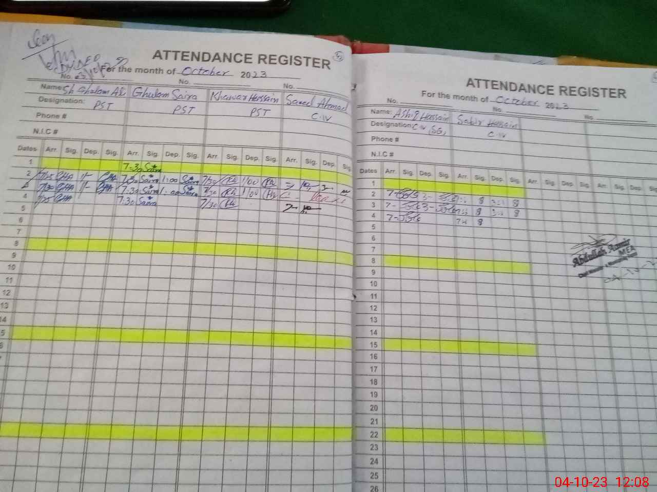 | 36**** | Gh**** Na**** Hu**** | 1 | 1 | 0 | 13 | 0 | 0 | 0 | 0 | 0 | 1 | Absent (Un-Authorized) | |