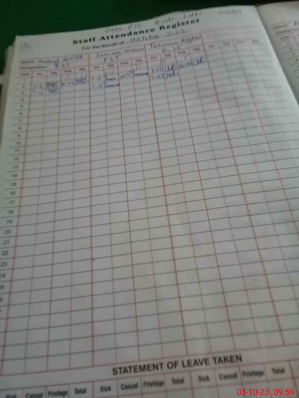 | Name: Sa**** No**** Designation: (School Headmaster's/Headmistress's) PST Phone/Cell Number: 03**** |