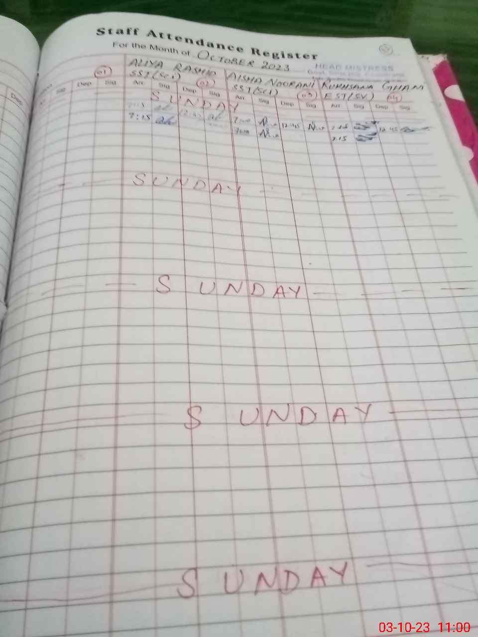 | Name: Ay**** No**** Designation: (School Headmaster's/Headmistress's) SST Phone/Cell Number: 03**** |
