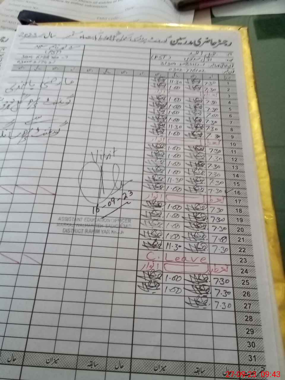 | CNIC | Full Name | Designation | R/C | Absence During Last Calender Month |