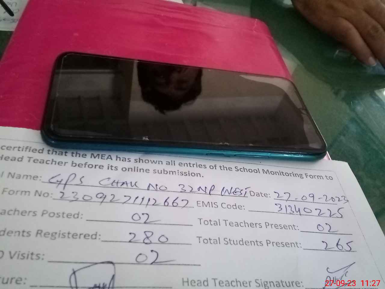 | Name: AT**** IQ**** Designation: (School Headmaster's/Headmistress's) EST Phone/Cell Number: 03**** |