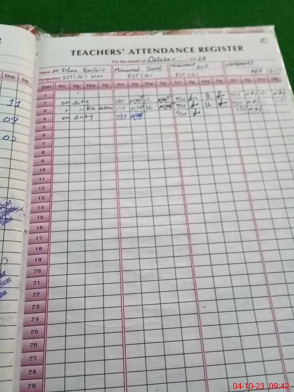 | 36**** | Mu**** Ir**** Ba**** | 5 | 1 | 0 | 0 | 0 | 0 | 0 | 0 | 0 | 0 | 0 | Exam Duty |