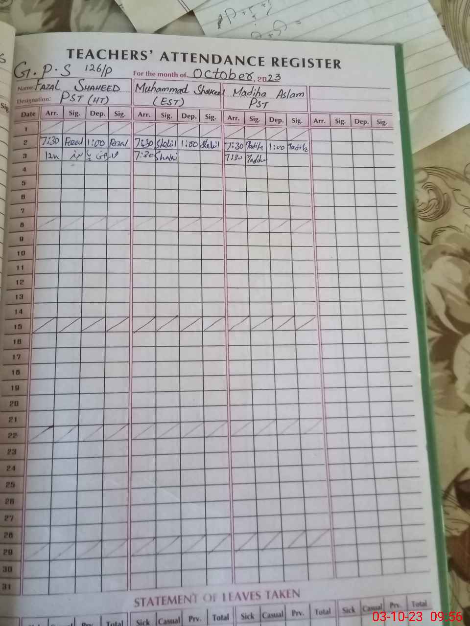 | Leave | Duty | Absent | Maternity | Medical | Ex- Pak |