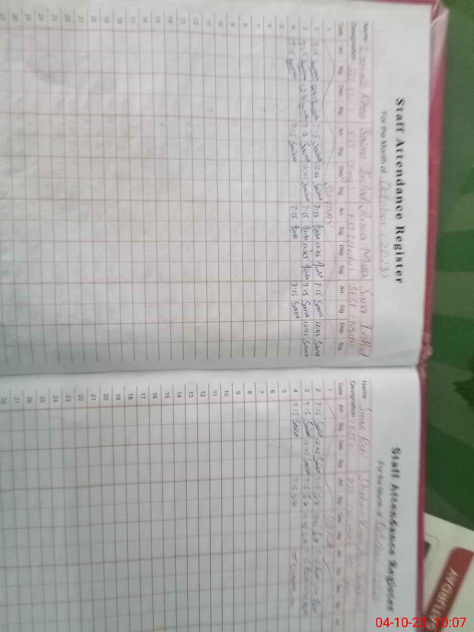| CNIC | Full Name | Designation | R/C | Absence During Last Calender Month |